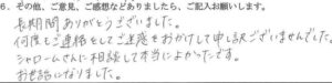 長期間ありがとうございました。何度もご連絡をしてご迷惑をおかけして申し訳ございませんでした。シャロームさんに相談して本当によかったです。おせわになりました。