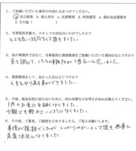 無事に免責決定され、お客様からは「事情が複雑でしたが、しっかりサポートして頂き、無事に免責決定されました」と喜んでいただきました。